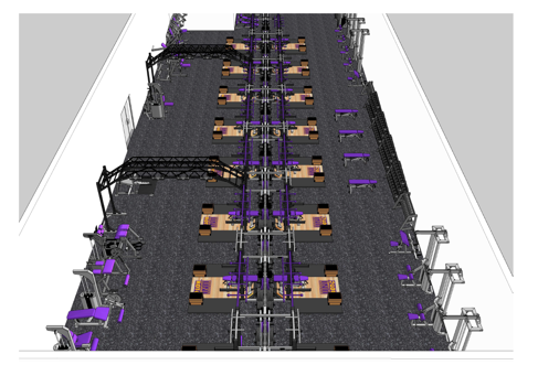 A 1,000 square foot standalone indoor/outdoor training facility designed to bring equipment outside utilizing Power-Lift Fly-Away Kits, designed for the US Navy SEALs in order to make efficient use of space and allow mobile training capabilities
